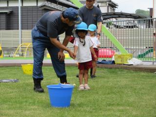 ホーム 花火教室 花火教室 2025年06月23日 消防士さんに花火の遊び方を教えてもらったよ ドラゴン花火には歓声があがってました! 手をしっかり伸ばして花火をやるよ 終わったらしっかりお水に入れます