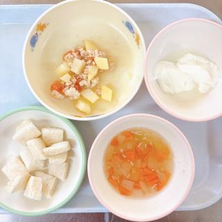 給食のどのメニューにヨーグルトが入っているでしょうか?3つの中から選んでね。