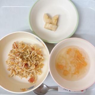 ホーム 1コマダイアリー 8月18日の給食 8月18日の給食 2025年08月18日 ・ミートソーススパゲティ ・キャベツスープ ・フルーツポンチ こちらは離乳食後期のメニューです。 ・やわらかスパゲッティー ・キャベツスープ ・バナナ 15時のおやつは《えびせんべい、ホームパイ》でした♪ 黄色グループの食べ物は『ちからのもと』 赤色グループの食べ物は『からだのもと』 緑色グループの食べ物は『げんきのもと』 今日も3つのグループの食材がそろいました♪