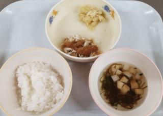 ホーム 9月17日の給食 9月17日の給食 2025年09月17日 ・ごはん ・魚のりんごソース(さわら) ・キャベツとカニカマあえ ・もずくスープ こちらは離乳食完了期のメニューです。 ・ごはん ・さわらのりんごソース ・キャベツの煮びたし ・もずくスープ 15時のおやつは《小豆ソフトクッキー》でした♪