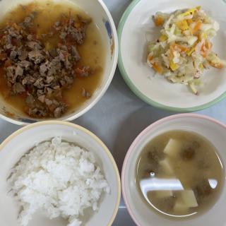 ホーム 9月19日の給食 9月19日の給食 2025年09月19日 ・ごはん ・鶏レバーのソース煮 ・りんごサラダ ・みそ汁(豆腐・なめこ) こちらは離乳食完了期のメニューです。 ・ごはん ・レバーのトマト煮 ・りんごサラダ ・みそ汁(なめこ・豆腐) 15時おやつは《雪の宿、ホームパイ》でした♪