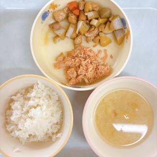 ホーム 10月15日の給食 10月15日の給食 2025年10月15日 ・ごはん ・鮭の塩麹焼き ・里芋と鶏肉の炒り煮 ・みそ汁(大根・油揚げ) こちらは離乳食完了期のメニューです。 ・ごはん ・焼き鮭 ・里芋の炒り煮 ・みそ汁(大根・油揚げ) 15時のおやつは《クッキー、ハッピーターン》でした♪ 黄色グループの食べ物は『ちからのもと』 赤色グループの食べ物は『からだのもと』 緑色グループの食べ物は『げんきのもと』 今日も3つのグループの食材がそろいました♪