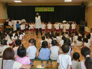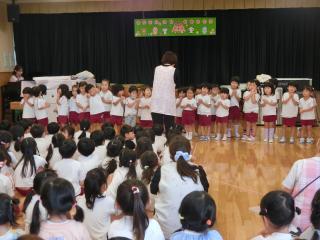 ホーム 10月のお誕生会 10月のお誕生会 2025年10月16日 先生の出し物は大型絵本「いいから いいから 2」 年少さんは「どんぐりころころ」を歌いました♪ ころころの動きがかわいかったね。 年中さんは「とんぼのめがね」 元気に歌えたね。 年長さんは「すずめがサンバ」 力強く歌ってくれました。