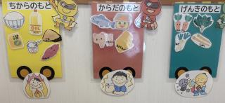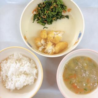 ホーム 10月20日の給食 10月20日の給食 2025年10月20日 ・ごはん ・たちうおのカレー揚げ ・ごまあえ ・さつま汁 こちらは離乳食完了期のメニューです。 ・ごはん ・カレイのカレー揚げ ・ごまあえ ・さつま汁 15時のおやつは《のりせんべい、アスパラガス》でした♪ 黄色グループの食べ物は『ちからのもと』 赤色グループの食べ物は『からだのもと』 緑色グループの食べ物は『げんきのもと』 今日も3つのグループの食材がそろいました♪