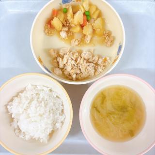 ホーム 10月21日の給食 10月21日の給食 2025年10月21日 ・ごはん ・マーマレードチキン ・じゃがいものそぼろ煮 ・みそ汁(白菜・しめじ) こちらは離乳食完了期のメニューです。 ・ごはん ・マーマレードチキン ・じゃがいもそぼろ煮 ・みそ汁(白菜・しめじ) 15時のおやつは《マカロニ安倍川》でした♪ 黄色グループの食べ物は『ちからのもと』 赤色グループの食べ物は『からだのもと』 緑色グループの食べ物は『げんきのもと』 今日も3つのグループの食材がそろいました♪