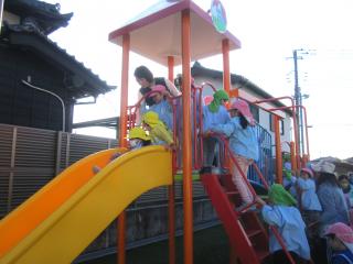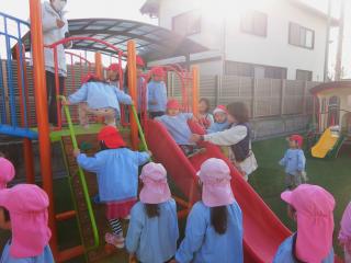 ホーム 新しい遊具が入りました。 新しい遊具が入りました。 2026年01月13日 朝、みんなで集まって、ケガをしない遊び方をレクチャー。「順番を守る」と子どもたちから意見が出てきました。 安全に気を付けながら、楽しく遊びたいと思います。 小さいお友達用の滑り台。隣りはミニボルダリング。2歳児のばら組さんも挑戦していました。 大きな滑り台と登り棒は大きい子向き。登り棒は、ほとんどの子がしがみつくのが精いっぱいの中、上まで登れた子がいました。未来のサスケの誕生か…。