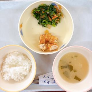 ホーム 4月15日の給食 4月15日の給食 2026年04月15日 ・ごはん ・カジキのスティック揚げ ・三色おひたし ・みそ汁(玉ねぎ・なめこ・わかめ) こちらは離乳食《完了期》のメニューです。 ・軟飯 ・カレイのスティック揚げ ・三色おひたし ・みそ汁(玉ねぎ・わかめ) 15時のおやつは《マシュマロサンド》でした♪