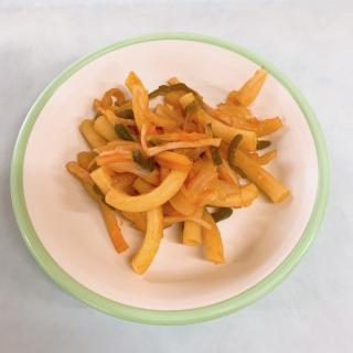 おやつはマカロニのケチャップあえ♪