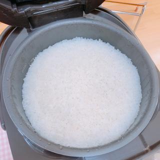 お米を研ぐ様子や炊飯器にお米と水をセットする様子を