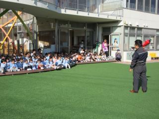 火事の非難訓練をしました。みんな静かに素早く非難することができました。