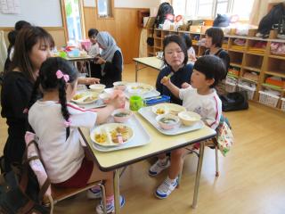懇談会も和やかに行われ、参観ではお家の人と楽しく手遊びをしたり、ちょっぴり恥ずかしそうにプレゼントを渡していました。