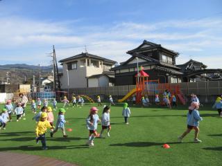 今日からさくら組さんと一緒に年少さんもジョギングを始めました。寒さに負けず、みんな一生懸命走っていました。