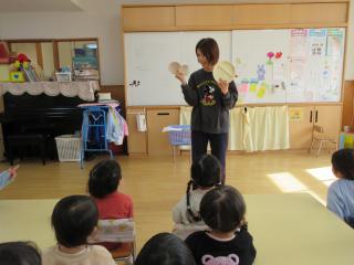来年度入園するお友だちとホールで一緒に遊びました。動物になったりパラバルーンをしたり楽しく遊ぶことができました。