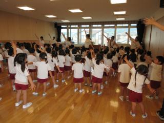 園長先生の話を聞き、みんなで体操をしました。久しぶりの『昆虫太極拳』は面白く、元気に体操ができました!